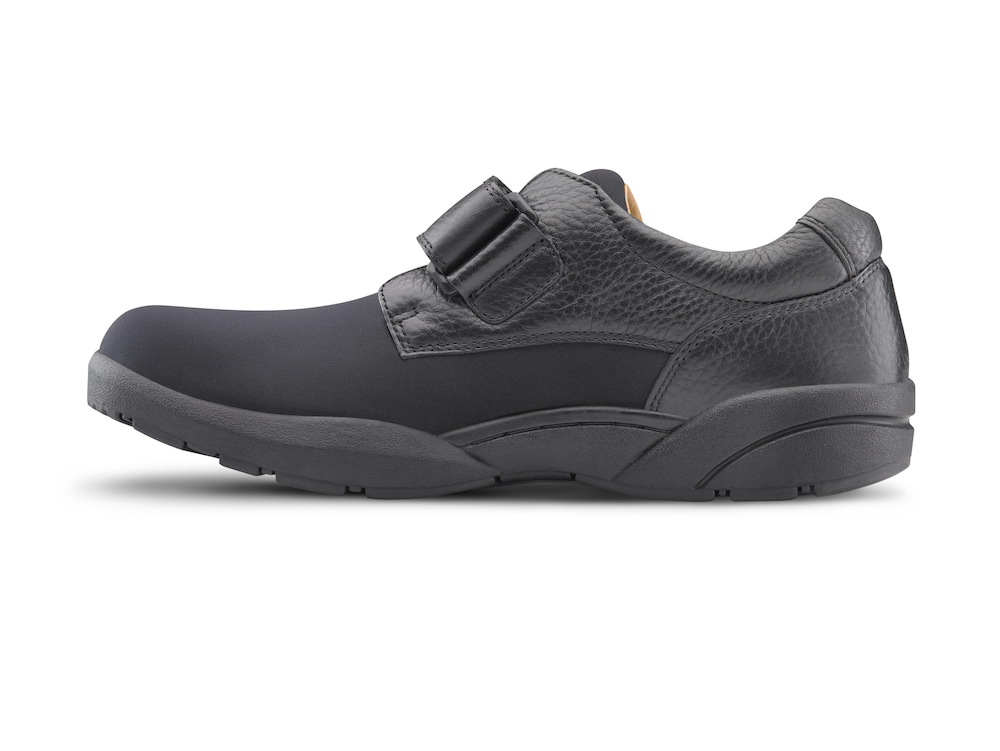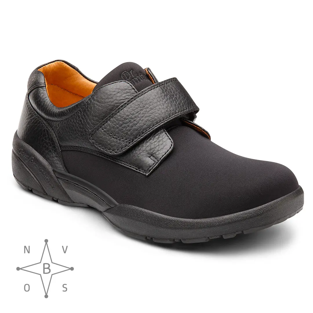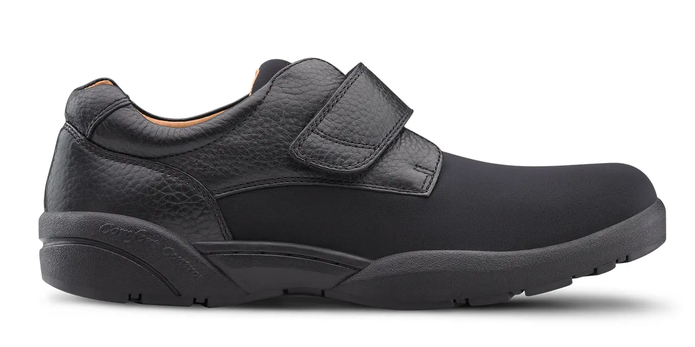Stap in voelbare kwaliteit. De Brian, een lichtgewicht casual herenschoen, is uitstekend geschikt voor hamertenen, knobbels, oedeem of andere voetaandoeningen die pijn veroorzaken tijdens het lopen. Deze ademende en rekbare Lycra®-schoen is ontworpen met hoogwaardige leren afwerking, gedetailleerde stiksels aan de buitenkant en zachte, soepele leren demping aan de binnenkant. De klittenbandsluiting maakt het aan- en uittrekken gemakkelijk en zorgt voor een persoonlijke pasvorm voor meer bescherming en stabiliteit.